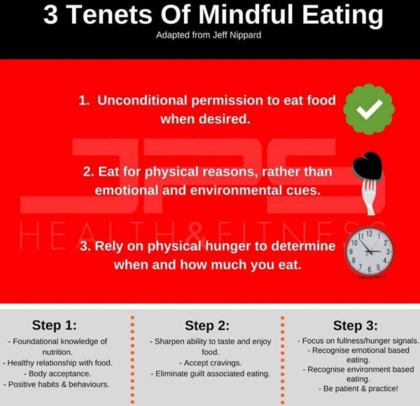 - Practice mindfulness when eating to reduce energy intake. Eating when rushed or distracted by other events can lead to overconsumption. Additionally, eating from a larger bowl or taking larger portions often increases energy intake. Therefore, consciously taking smaller portions and regulating the environment in which you eat can help you decrease energy intake, promoting weight loss (or vice versa if bulking).