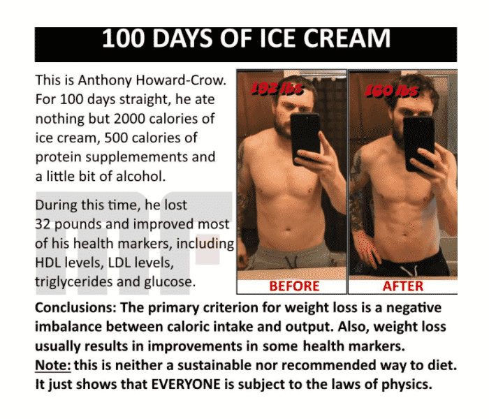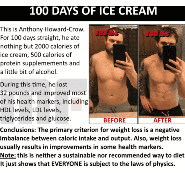 Cut calories by 400-600/day if you’re “fit”.