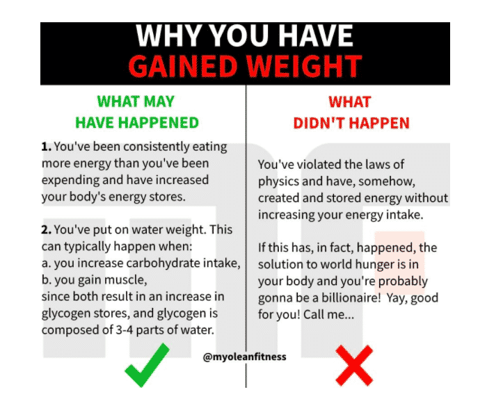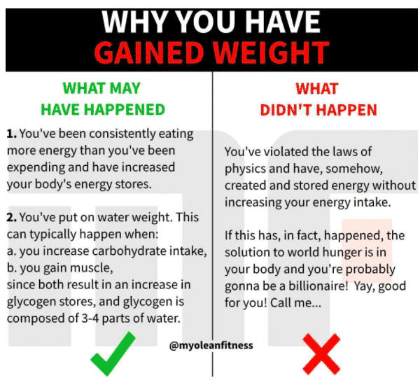 - You’ve overestimated your maintenance intake and thus consumed too many calories.