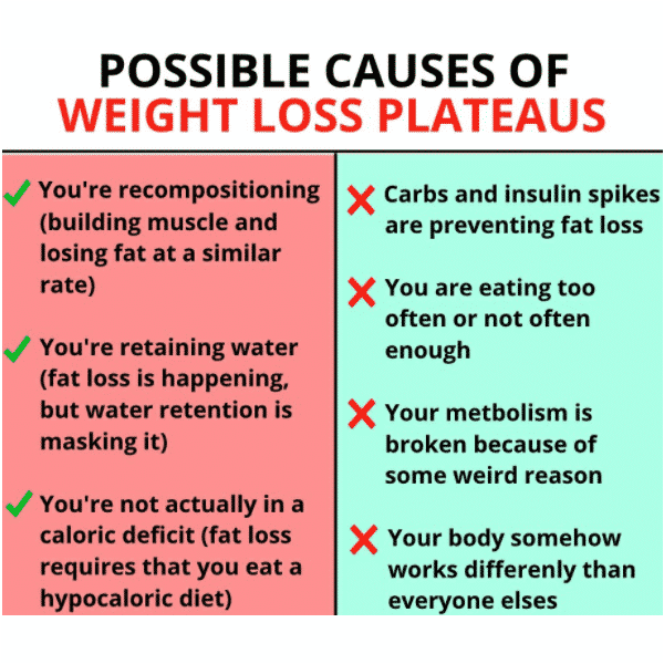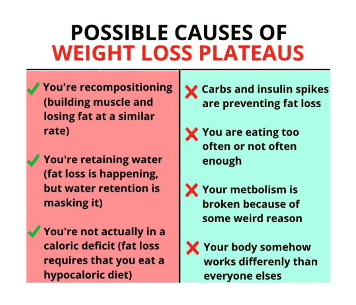 - You’re retaining water and you’ve lost fat, but water weight has masked this fat loss. This generally occurs after some initial weight loss.