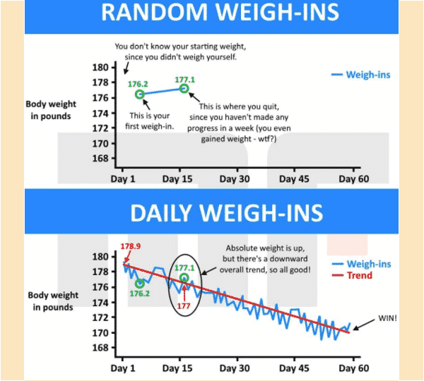 - Daily weigh-ins are extremely useful.