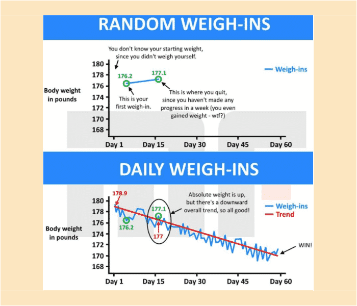 - Any given weigh-in tells you little about the trend of your body weight over time.
