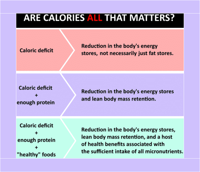 - Changes in body composition/weight depend on energy imbalance; CICO (calories in:calories out).